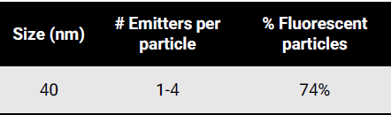 The 40nm single emitter series is the most popular product in use for quantum optics research groups. Single particle characterization determined the average number of emitters (NV centers) per particle to range from 1-4 on average. The NV⁻/NV⁰ ratio was determined to be ~0.7.