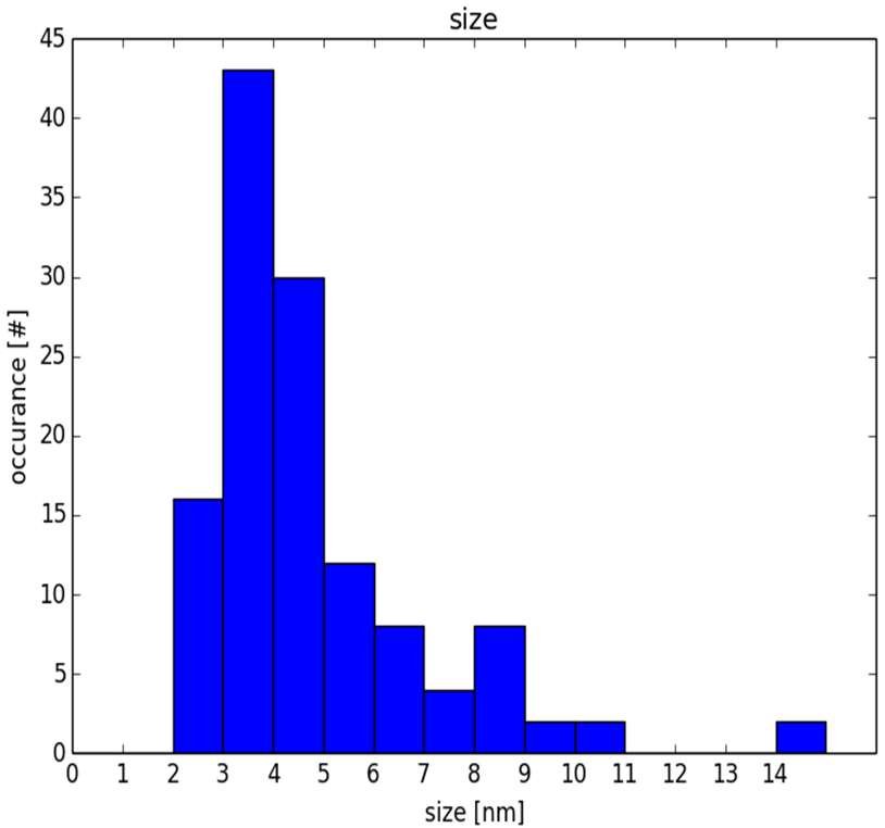 Figure 4: AFM confocal size (height) distribution of 10nm-Md particles. Courtesy T. Oeckinghaus, U. Stuttgart.