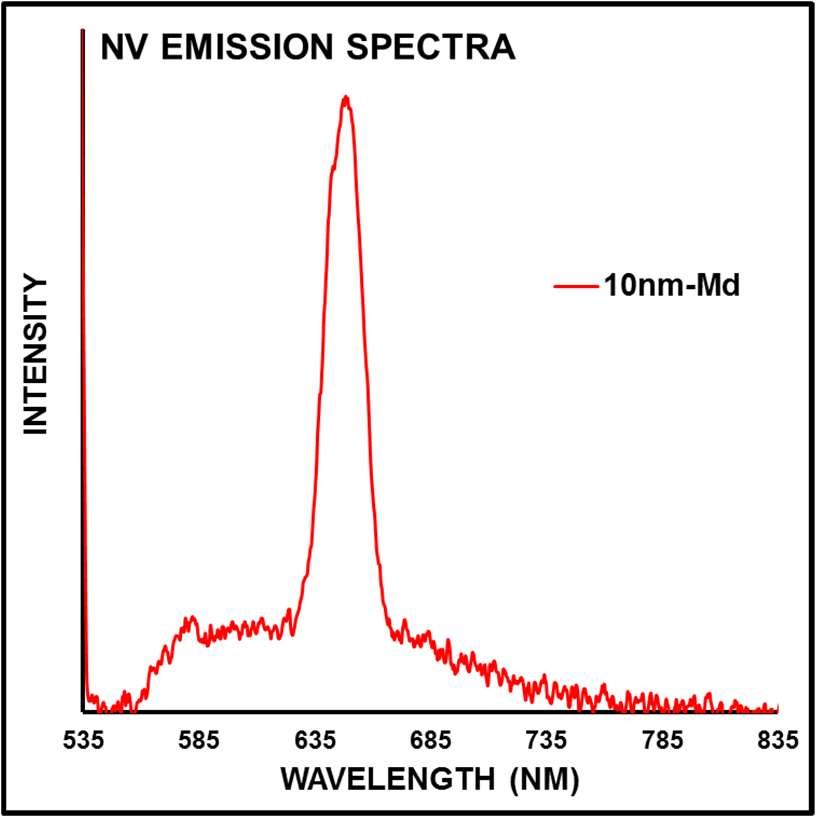 The level of fluorescence and the population of fluorescent diamond particles in the sub-15nm range is generally very low. These particles are not suitable for direct cellular imaging, but will require users equipped with highly advanced optical setups to use effectively. Therefore, these particles are more suitable for users interested in single emitter applications. The quality of NV⁻ centers in these particles is relatively low due to large lattice distortion and damage induced from milling from larger sizes. Single particle fluorescence characterization confirmed the presence of active NV⁻ centers, and determined that the approximate NV⁻/NV⁰ ratio was ~0.6, so fluorescing particles contain ~60% NV⁰ and ~40% NV⁻.